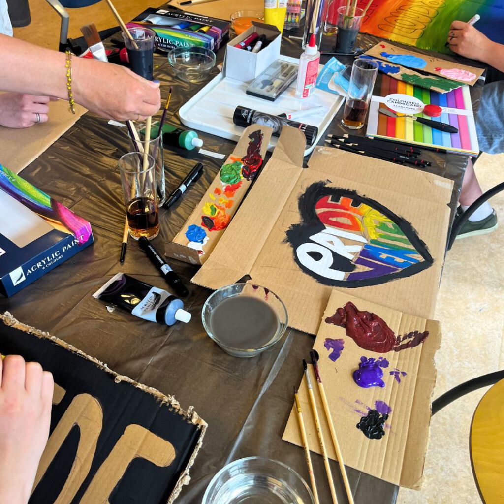 Ter voorbereiding van de Pride Walk op zaterdag 20 juni gaan we de week ervoor, op zaterdag 13 juni, samen protestborden en vlaggen maken.